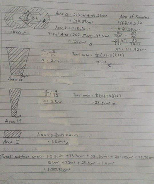 FOR THIS EXERCISE, WE HAD TO FIND THE SURFACE AREA AND VOLUME OF THE QUESTION THAT GIVEN BY THE LECTURER. IT IS A QUITE CHALLENGING QUESTION. MY GROUP MEMBERS WAS ME, ZIA HUEI, NADIRAH AND AFFIQAH.